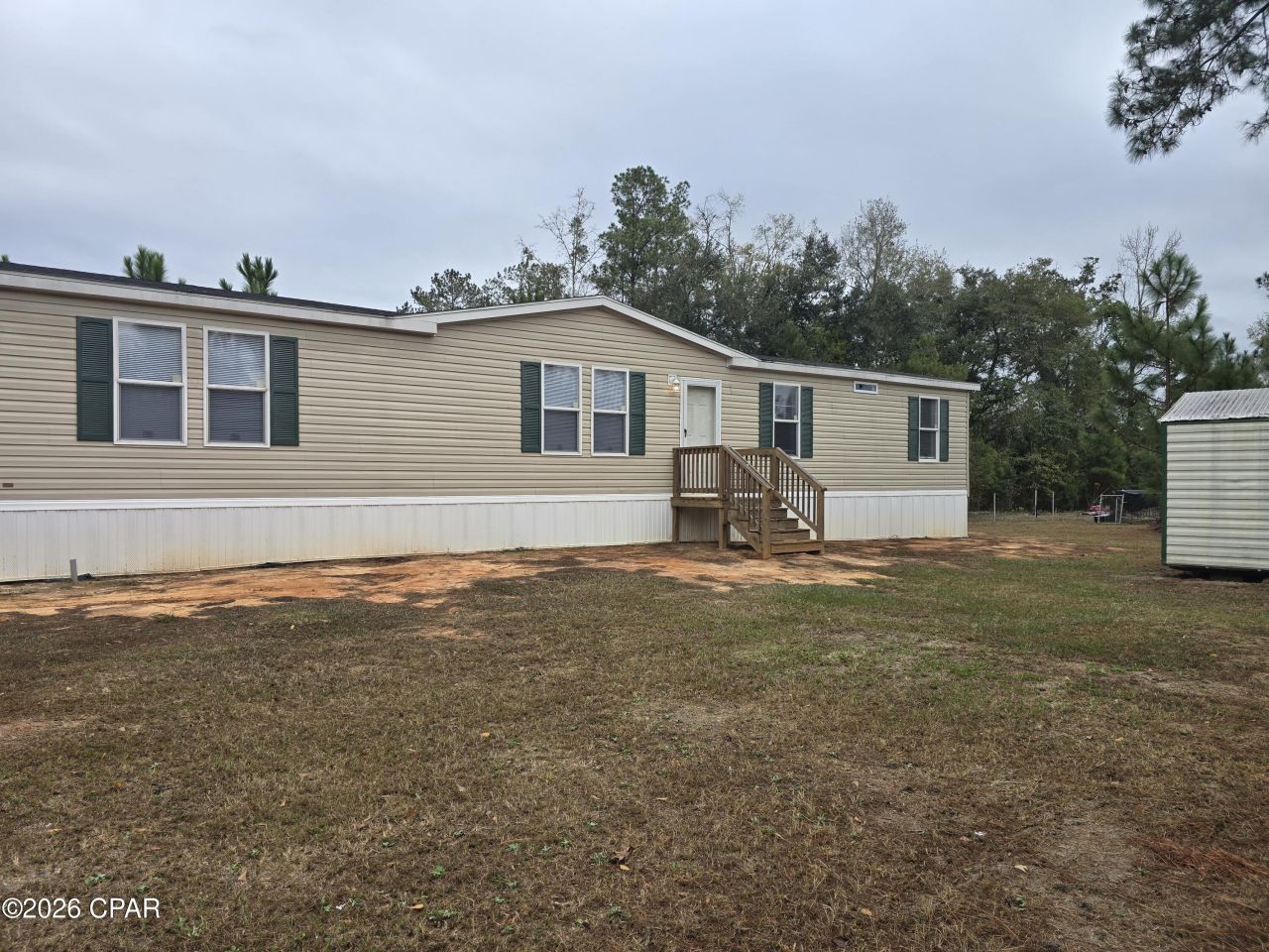 Located in Bristol, Florida, this spacious 5-bedroom, 3-bath manufactured home sits on approximately 1/3 of an acre and offers a functional layout with plenty of room for comfortable living. Designed with a split floor plan and open-concept layout, the home provides both privacy and flexibility for a variety of lifestyles. The main living area flows seamlessly between the living room, dining space, and kitchen, creating an inviting setting for everyday living and entertaining. The primary suite is well-appointed with a large walk-in closet and a private bathroom featuring a double vanity and a large walk-in shower. Additional bedrooms are well sized, making them ideal for family, guests, or home office use. Outside, the property includes a small storage building, offering extra space for tools, equipment, or outdoor gear. With its combination of space, practicality, and convenient location, this home is a great option for those looking for room to grow in a quiet North Florida setting.